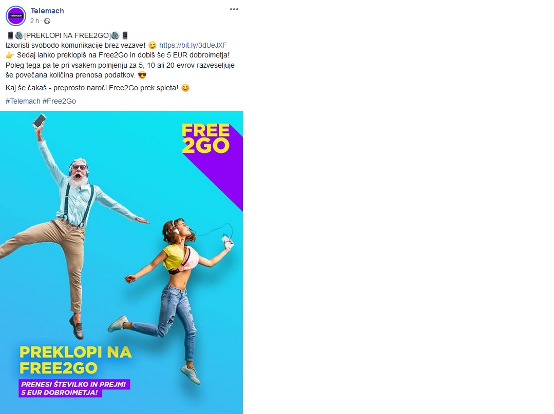 - Telemach paket: FREE2GO
